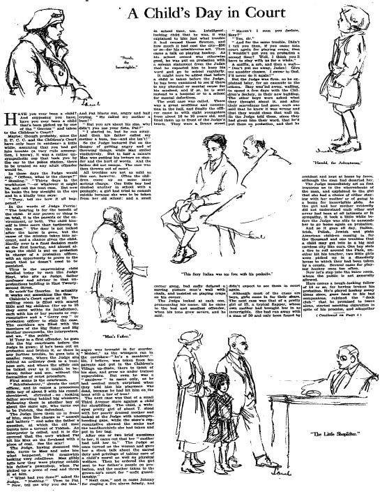 New York state established children's courts in 1922. By 1923, a New York Times Magazine article detailed what they were like for juvenile defendants.