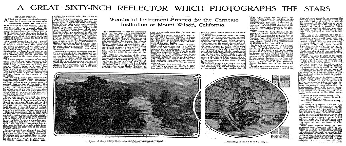 A GREAT SIXTY-INCH REFLECTOR WHICH PHOTOGRAPHS THE STARS: Wonderful Instrument Erectred by the Carnegie Institution at Mount Wilson, California. (PDF)