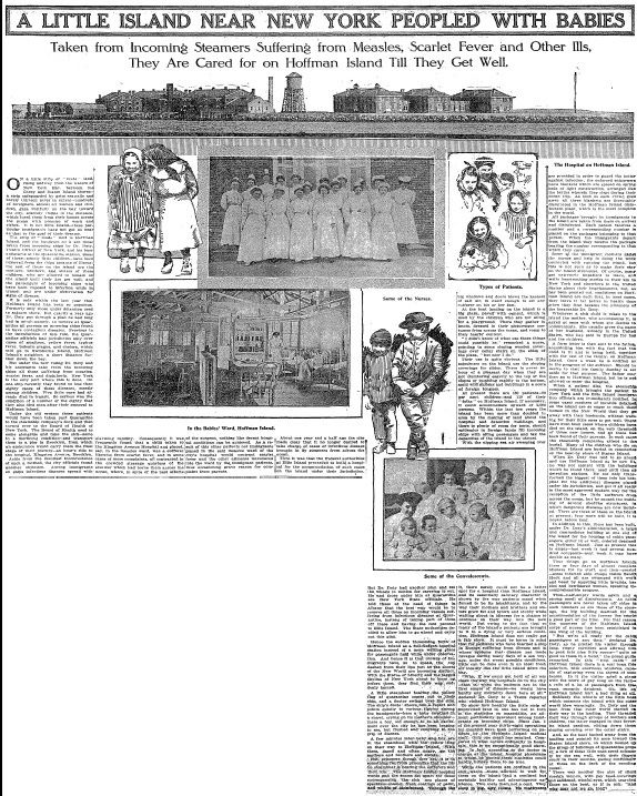 A LITTLE ISLAND NEAR NEW YORK PEOPLED WITH BABIES: Taken from Incoming Steamers Suffering from Measles, Scarlet Fever and Other Ills, They Are Cared for on Hoffman Island Till They Get Well. (PDF)