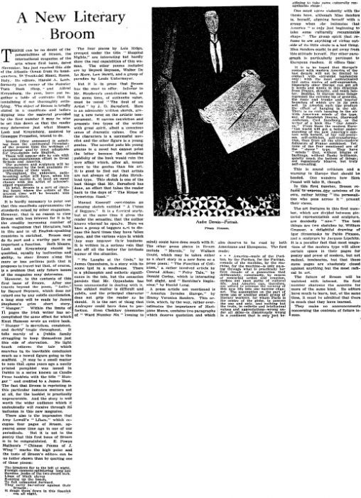 This 1921 article predicted potentially great things for the new literary magazine Broom. Its final issue was published less than two and a half years later, in January 1924.