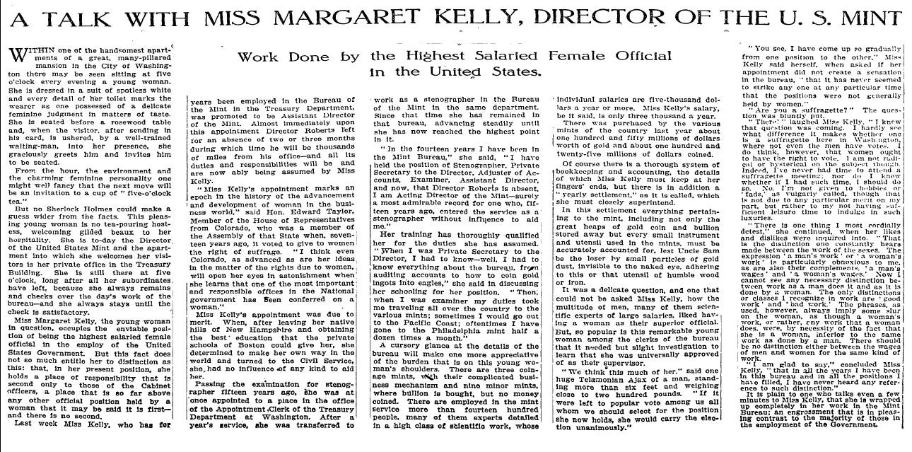 A TALK WITH MISS MARGARET KELLY, DIRECTOR OF THE U. S. MINT: Work Done by the Highest Salaried Female Official in the United States. (PDF)