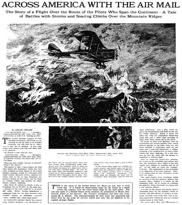 During the era of planes, the U.S. government established the "Air Mail" division of the Post Office Department in 1918. This 1924 New York Times Magazine article tagged along on one such cross-country route.