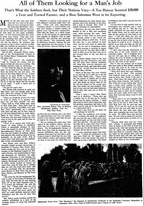 All of Them Looking for a Man's Job: That's What the Soldiers Seek, but Their Notions Vary - -A Toe Dancer Scorned $30,000 a Year and Turned Farmer, and a Shoe Salesman Went in for Exporting