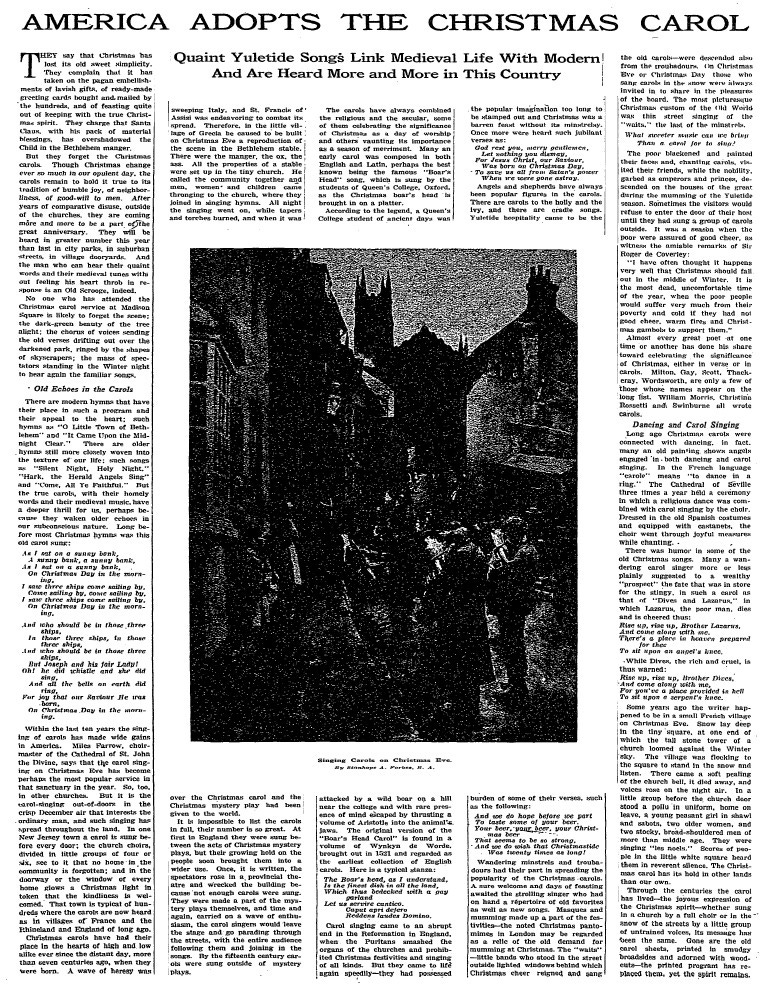 America Adopts the Christmas Carol: Quaint Yuletide Songs Link Medieval Life With Modern And Are Heard More and More in This Country