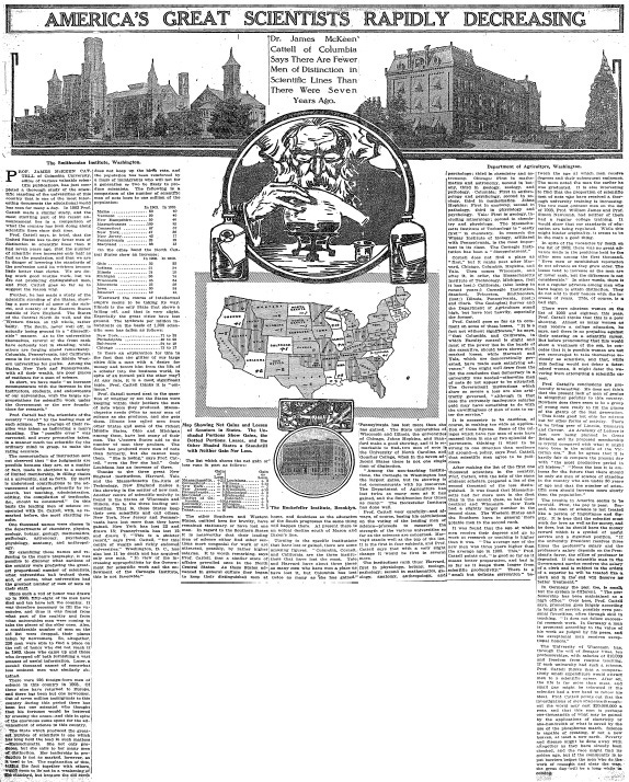 AMERICA'S GREAT SCIENTISTS RAPIDLY DECREASING: Dr. James McKeen Catell of Columbia Says There Are Fewer Men of Distinction in Scientific Lines Than There Were Seven Years Ago. (PDF)