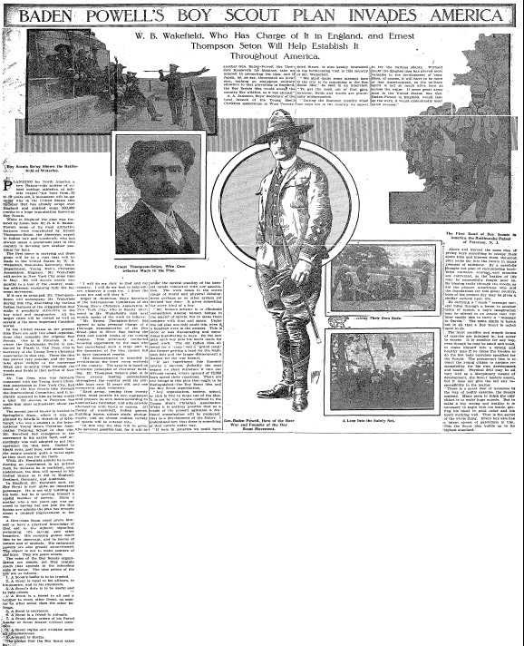 BADEN POWELL'S BOY SCOUT PLAN INVADES AMERICA: W. B. Wakefield, Who Has Charge of It in England, and Ernest Thompson Seton Will Help Establish It Throughout America (PDF)