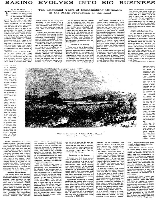 Around 1924, a New York Times Magazine article noted, bread was quickly transforming from primarily a food cooked at home from scratch to a purchased product.