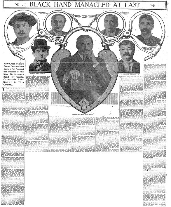 Another fascinating true crime story. The man in the middle of that photomontage is John Wilkie, chief of the United States Secret Service from 1898 - 1911. This article tells the story of how he finally caught an international gang of criminals known as the Black Hand. The website GangRule.com is all about organized crime during the turn of the last century, and they have a lot of background information about the Black Hand including biographies of all the members. This article describes the detective work that brought them down.