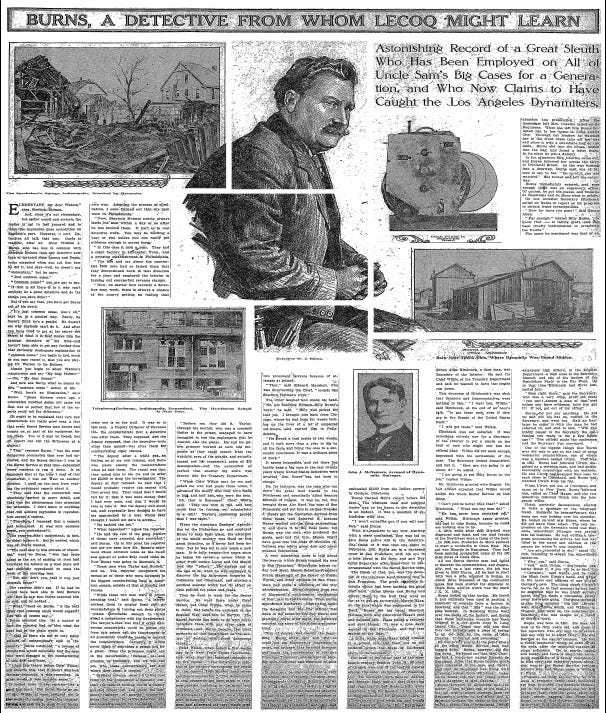BURNS, A DETECTIVE FROM WHOM LECOQ MIGHT LEARN: Astonishing Record of a Great Sleuth Who Has Been Employed on All of Uncle Sam's Big Cases for a Generation, and Who Now Claims to Have Caught the Los Angeles Dynamiters. (PDF)