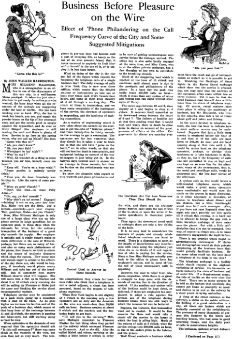 In 1919, NYC had 3+ million telephone calls daily -- more than the system could handle. "The strain at times is tremendous, and we hear many complaints of the inadequacy of the service, the slowness of operators in responding, and the tardiness of making connections."