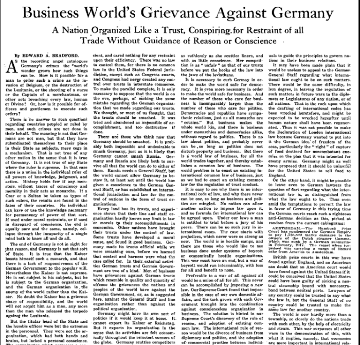 Business World's Grievance Against Germany: A Nation Organized Like a Trust, Conspiring for Restraint of all Trade Without Guidance of Reason or Conscience