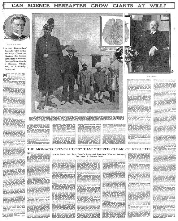 CAN SCIENCE HEREAFTER GROW GIANTS AT WILL? Recent Researches Seem to Point to the Pituitary Gland as Holding the Secret of the Size of Human Beings -- Gigantism Is a Disease, Which May Be Artificially Produced. (PDF)