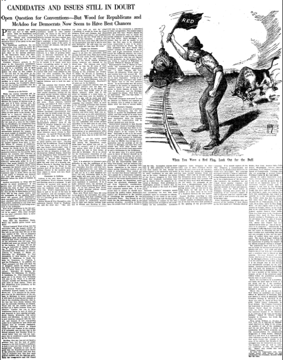 Candidates and Issues Still in Doubt: Open Question for Conventions -- But Wood for Republicans and McAdoo for Democrats Now Seem to Have Best Chances