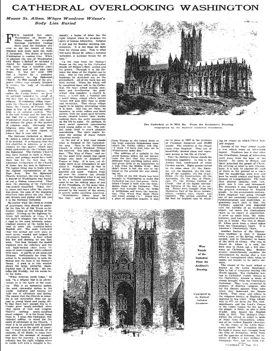 When former President Woodrow Wilson died in February 1924, he was buried at Washington National Cathedral. A contemporaneous New York Times Magazine article analyzed the building's potential role as a "national sanctuary."