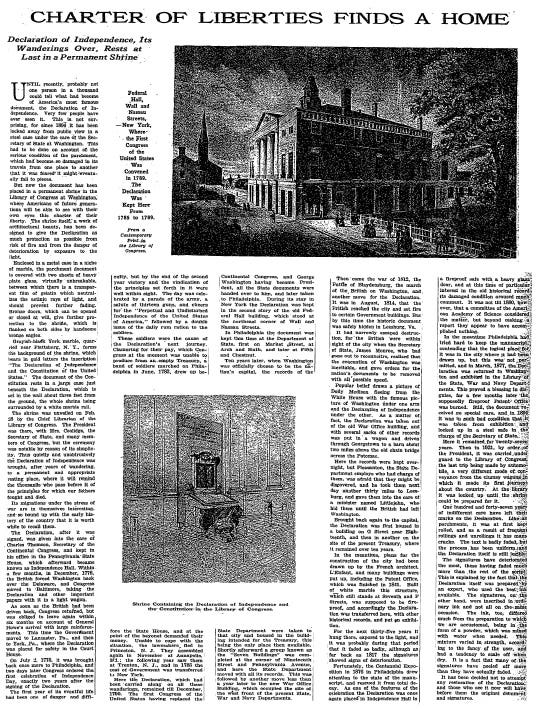 Occasionally, the Declaration was displayed in a different city entirely, such as Philadelphia during the country's 1876 Centennial celebrations.