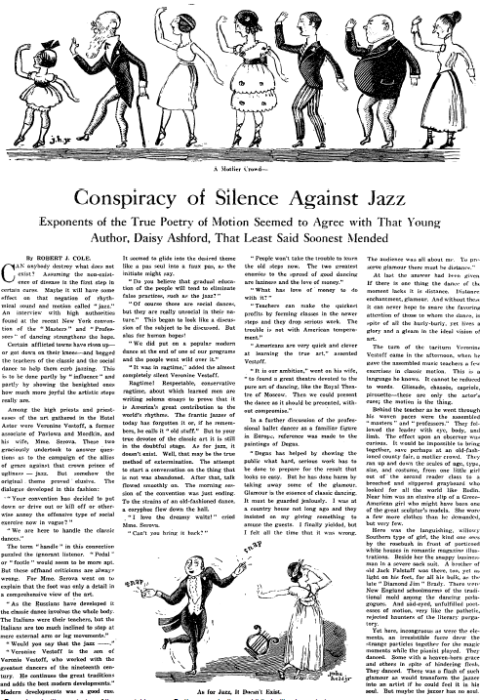 Conspiracy of Silence Against Jazz: Exponents of the True Poetry of Motion Seemed to Agree with That Young Author, Daisy Ashford, That Least Said Soonest Mended