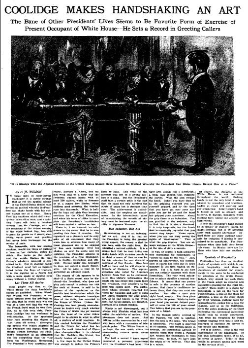 President Calvin Coolidge was so into shaking people's hands that a 1925 New York Times Magazine article estimated he would have shaken "a million or two" by the end of his presidency.