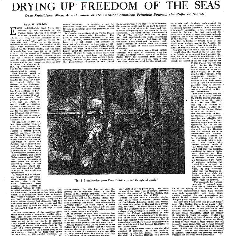 Hitherto, the infringement of such maritime liberty has been confined to periods of war and, even then, has been accepted, if at all, only under protest. The present position is, however, that the right of search would be exercised by the United States, not under the necessity of war nor for the enforcement of any international covenant, but for the sole purpose of preventing an evasion of a domestic law.