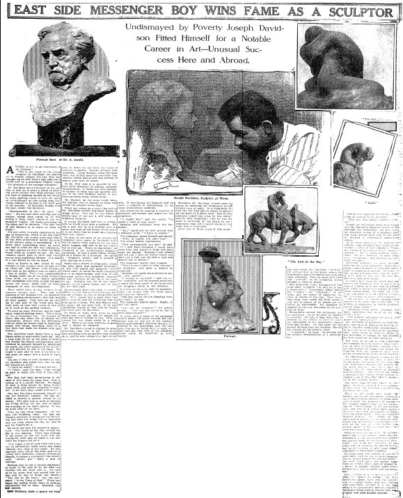 EAST SIDE MESSENGER BOY WINS FAME AS A SCULPTOR: Undismayed by Poverty Joseph Davidson Fitted Himself for a Notable Career in Art - Unusual Successes Here and Abroad. (PDF)