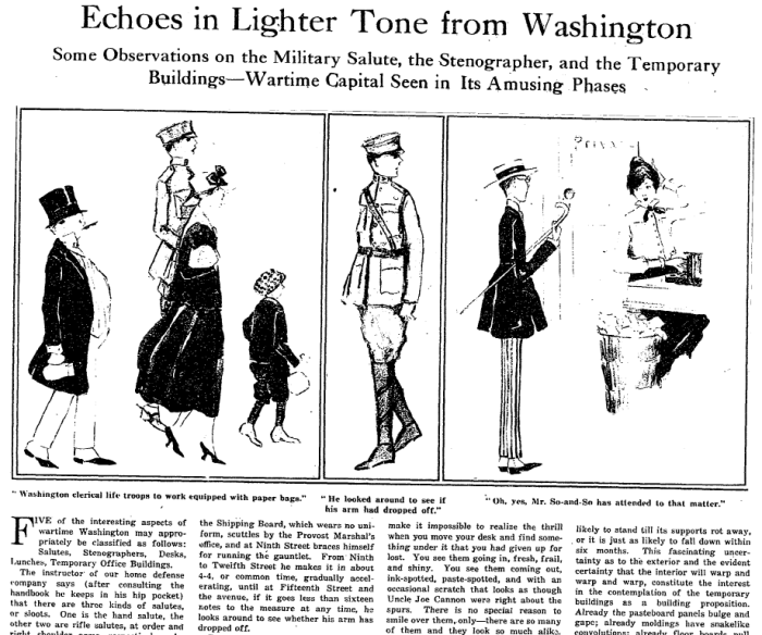 Echoes in Lighter Tone from Washington: Some Observations on the Military Salute, the Stenographer, and the Temporary Buildings -- Wartime Capital Seen in Its Amusing Phases