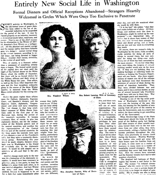 America's entering of World War I impacted the social scene in Washington: