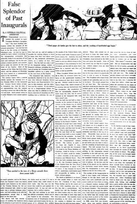The 1921 article also noted that the vice president was inaugurated in the Senate chamber, not on the Capitol steps as occurs today. That changed in 1937, during the second inaugural of Franklin D. Roosevelt with Vice President John Nance Garner.