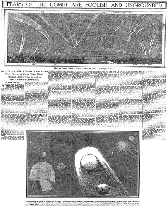 FEARS OF THE COMET ARE FOOLISH AND UNGROUNDED: Mary Proctor Tells of Similar Scares in the Past, Occuring Every Time These Blazing Visitors Were Expected, and All Proved Groundless (PDF)