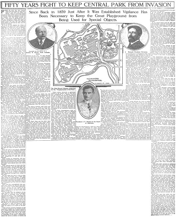 FIFTY YEARS FIGHT TO KEEP CENTRAL PARK FROM INVASION: Since Back in 1859 Just After It Was Established Vigilance Has Been Necessary to Keep the Great Playbround from Being Used for Special Objects (PDF)