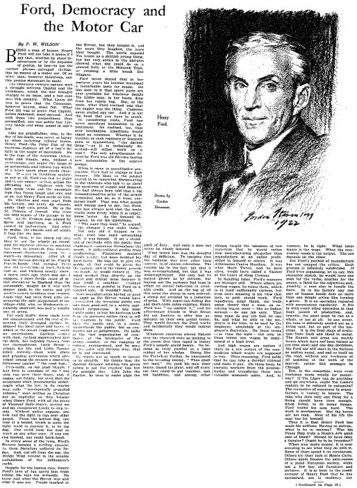P.W. Wilson concluded his 1922 piece about Ford with a reflection on how much Ford's invention helped the lives of those middle-class and even lower-class Americans whose wealth he now monumentally exceeded: