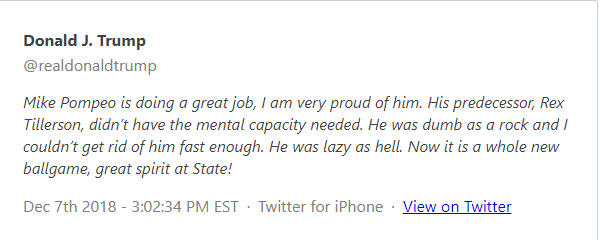 If you want to see actually bad blood between a president and a Secretary of State, it's hard to beat Donald Trump and Rex Tillerson: