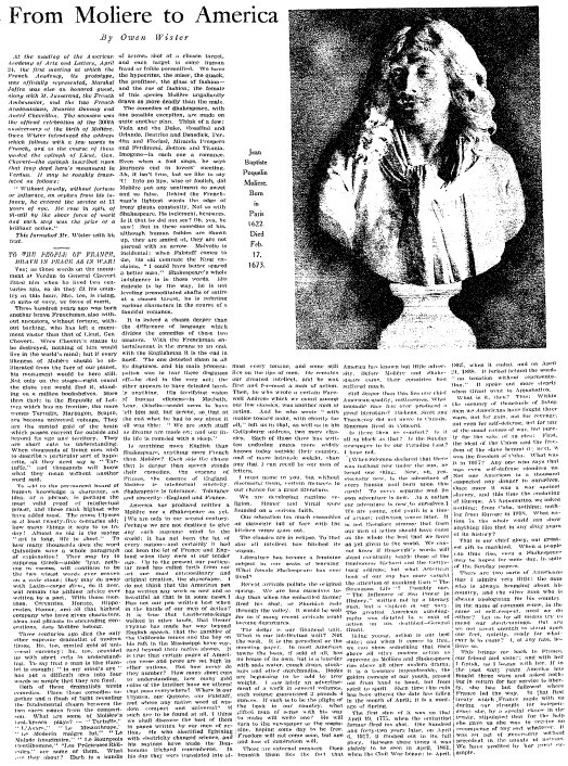 America has produced neither a Molière nor a Shakespeare as yet... If such are to be found at all, I think we shall discover the best of them in pages written by our men of action.