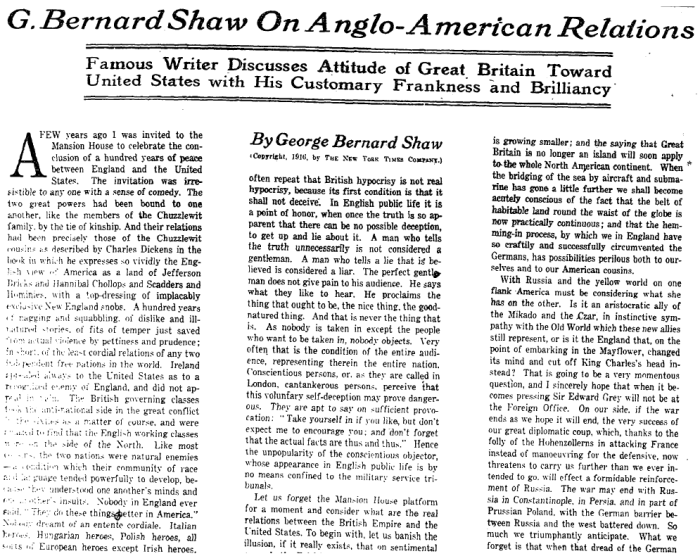 George Bernard Shaw On Anglo-American Relations