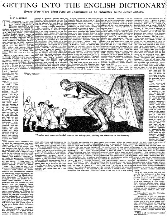 The sporting writers of the newspapers gave currency to "African golf" until it became a fixture in the language. Chiropractic and chiropractor came in with a new form of medical treatment. Automat and cafeteria were born of the luncheon rush hour. Hokum came in from the stage to the pages of the dictionary only in 1923, although actors have used it for a score of years. A new kind of reformer bred intelligentsia. Baseball is responsible for bingle. The World War gave to the language aviatik, blimp, Blighty, camouflage, dud, slacker, zero hour, Bolshevik, Czechosolovak — in fact, enough terms for a small dictionary of its own.
