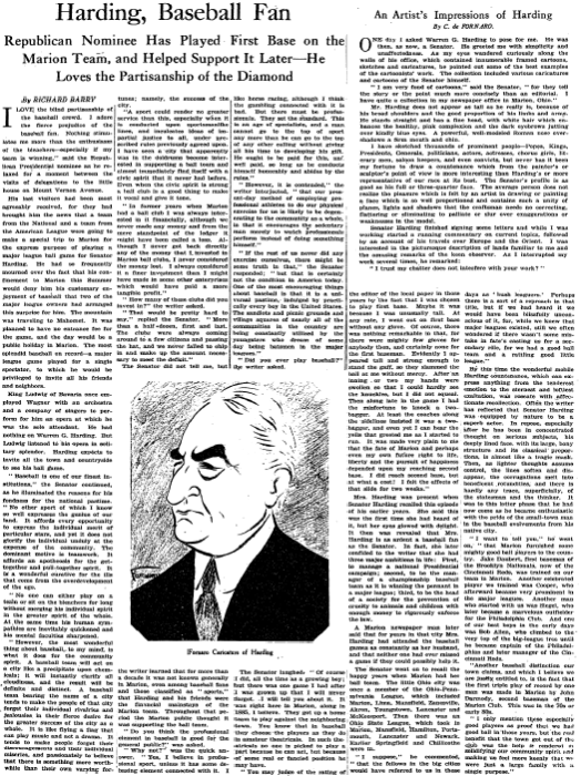 Harding, Baseball Fan: Republican Nominee Has Played First Base on the Marion Team, and Helped Support It Later -- He Loves the Partisanship of the Diamond