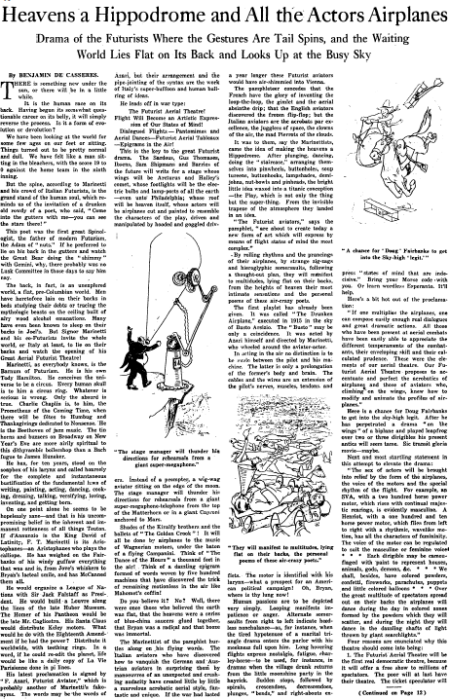 Heavens a Hippodrome and All the Actors Airplanes: Drama of the Futurists Where the Gestures Are Tail Spins, and the Waiting World Lies Flat on Its Back and Looks Up at the Busy Sky