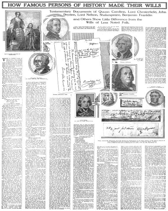 HOW FAMOUS PERSONS OF HISTORY MADE THEIR WILLS: Testamentary Documents of Queen Caroline, Lord Chesterfield, John Dryden, Lord Neslon, Shakespeare, Benjamin Franklin and Others Show Little Difference from the Wills of Less Noted Folk. (PDF)