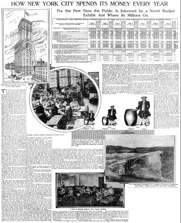 The annual budget of New York City 100 years ago was $163 million. For the first time, the city revealed just where that money goes, in a public exhibition about the 1910 budget.