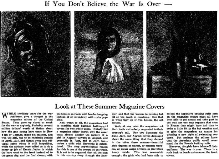 Magazine covers during summer 1919, after WWI had ended, were different than during summers 1917 and 1918 during the war:
