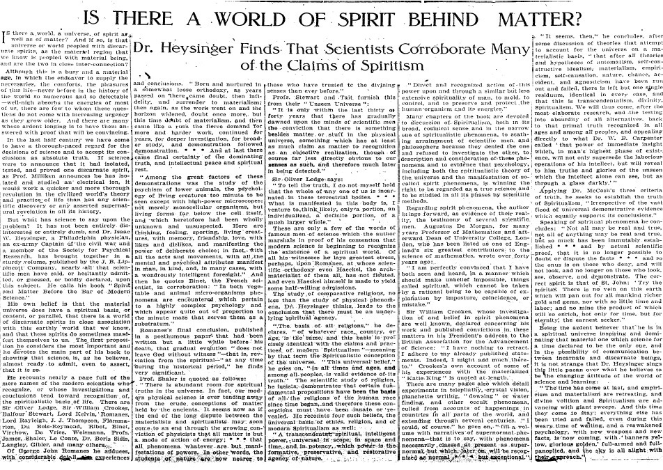 He starts by listing a full page of scientists who believe in the spirit world. He goes on to say: