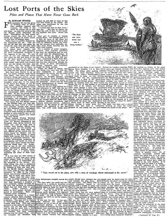 In 1923, "disappearing ships" were being replaced in the popular imagination by "disappearing planes."
