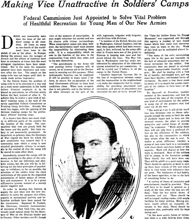 Making Vice Unattractive in Soldiers' Camps: Federal Commission Just Appointed to Solve Vital Problem of Healthful Recreation for Young Men of Our New Armies