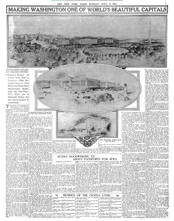 MAKING WASHINGTON ONE OF WORLD'S BEAUTIFUL CAPITALS: L'Enfant's Dream to Come True After a Century -- With the Approval of the Plans for Three New Department Buildings, the Ten-Year-Old Plan for a Splendid Home for the Government Is Launched (PDF)