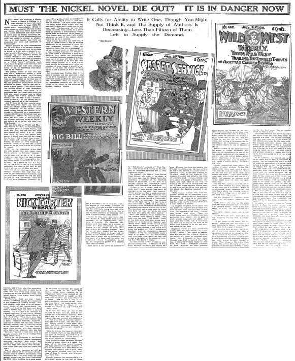 MUST THE NICKEL NOVEL DIE OUT? IT IS IN DANGER NOW: It Calls for Ability to Write One, Though You Might Not Think It, and The Supply of Authors Is Decreasing -- Less Than Fifteen of Them Left to Supply the Demand. (PDF)