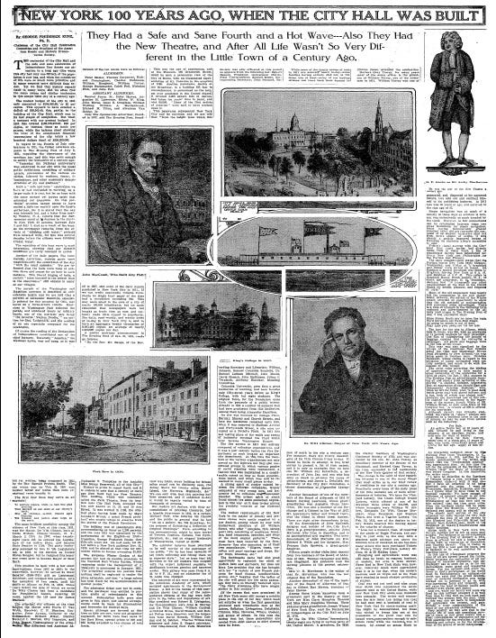 NEW YORK 100 YEARS AGO, WHEN THE CITY HALL WAS BUILT: They Had a Safe and Sane Fourth and a Hot Wave -- Also They Had the New Theatre, and After All Life Wasn't So Very Different in the Little Town of a Century Ago. (PDF)