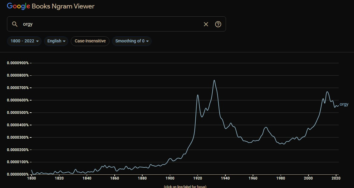I was also curious about the word "orgy" in the headline, used non-sexually in a way it rarely is now.