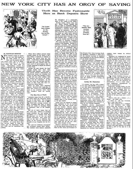 Between July 1 and Jan. 1, 1924, New Yorkers gave $100,000,000 more to the receiving tellers than they withdrew from the paying teller... In the last five years, the savings bank deposits in New York City have increased one billion dollars.