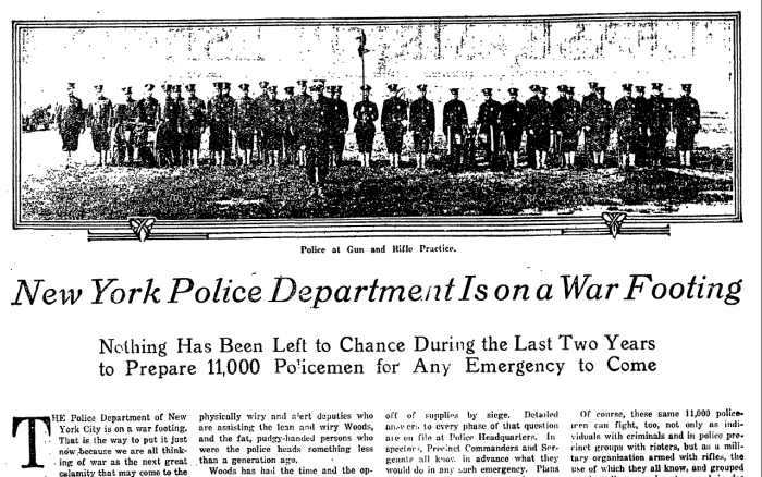 Lest one thinks that war only affects law enforcement on a national level, the local NYPD was heavily prepared for imminent involvement in the World War I:
