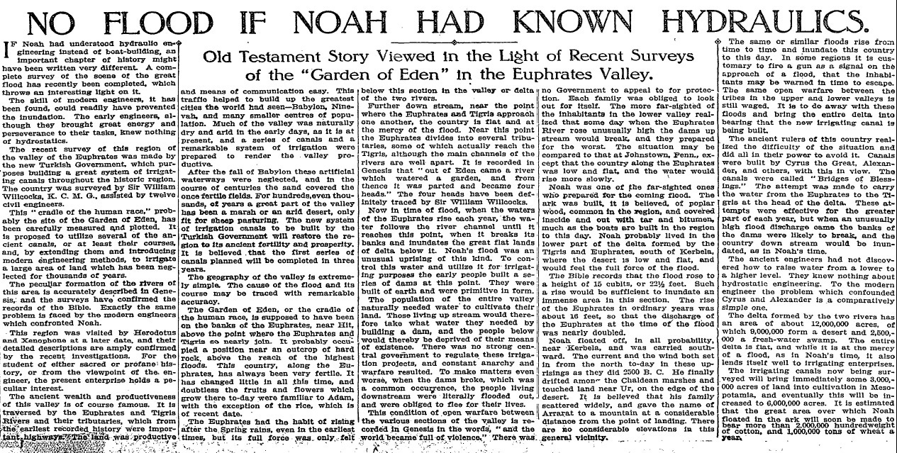 NO FLOOD IF NOAH HAD KNOWN HYDRAULICS: Old Testament Story Viewed in the Light of Recent Surveys of the "Garden of Eden" in the Euphrates Valley (PDF)