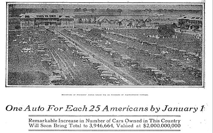 One Auto For Each 25 Americans by January 1: Remarkable Increase in Number of Cars Owned in This Country Will Soon Bring Total to 3,946,664, Valued at $2,000,000,000