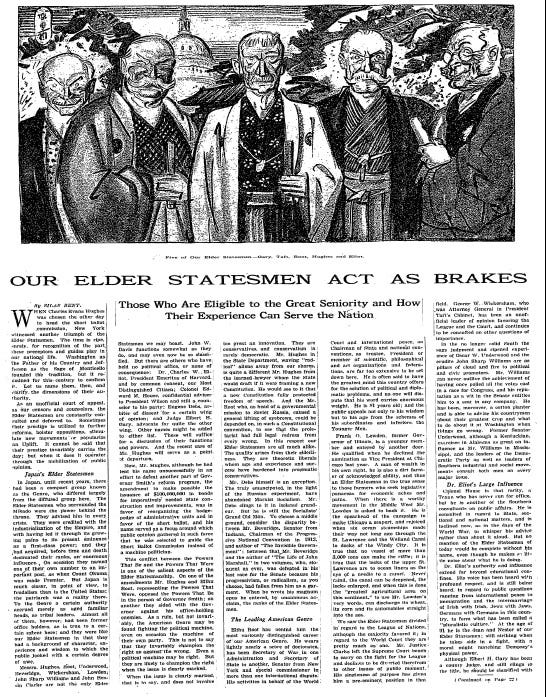 Who were considered the “elder statesmen” of American politics and society in 1925? A New York Times Magazine article listed more than a dozen, ranging from as old as 91 to as young as… 52?!